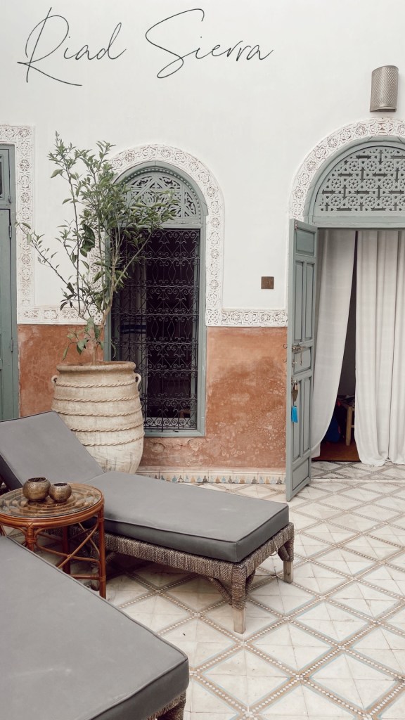 Pour ma première fois à Marrakech, j’avais envie de vivre l’expérience à fond en choisissant de dormir en plein centre de la Médina. Après quelques recherches, j’ai trouvé le Riad Sierra. Ce Riad est tenu par des Américains, Kristen & Shea, qui sont tombés amoureux de Marrakech en 2018 lors d’un voyage et qui 3 mois plus tard y sont revenus pour ouvrir leur maison d’hôtes. Au Riad Sierra, on se sent comme à la maison, la décoration est faite avec beaucoup de gout et le personnel est d’une gentillesse incroyable. J’ai vraiment eu un coup de coeur pour cet endroit et le recommande à toutes personnes voulant aller à Marrakech!